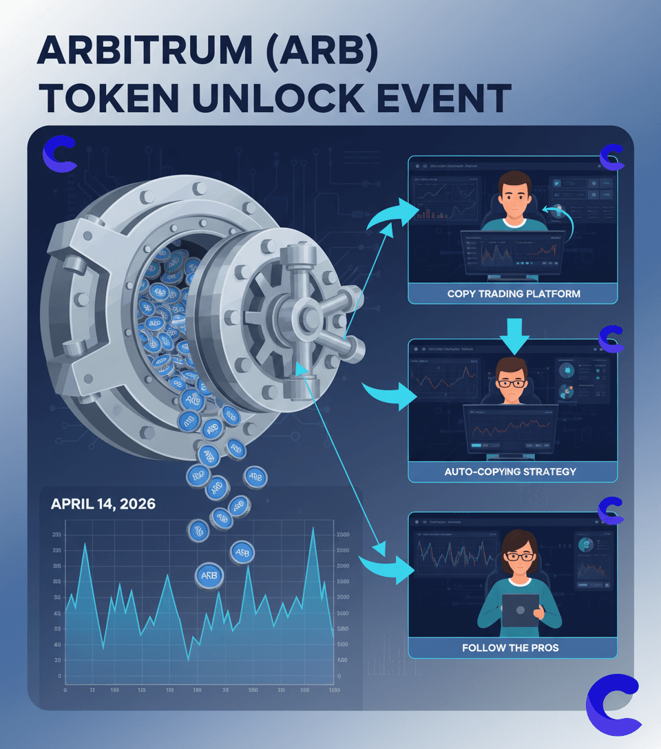 Arbitrum unlocks 92M+ ARB tokens, sparking volatility. Discover the impact on automated and copy trading strategies, with unique Copygram insights.
