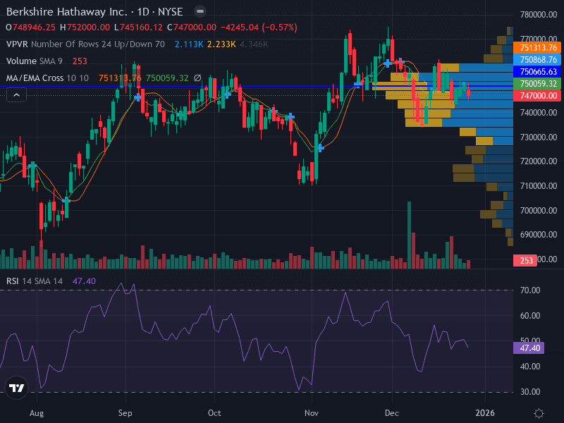 Recent Stock Performance: BRK.A traded in a consolidation range, closing at 746,196 on Dec 26, down 0.67% for the week. [Source]
