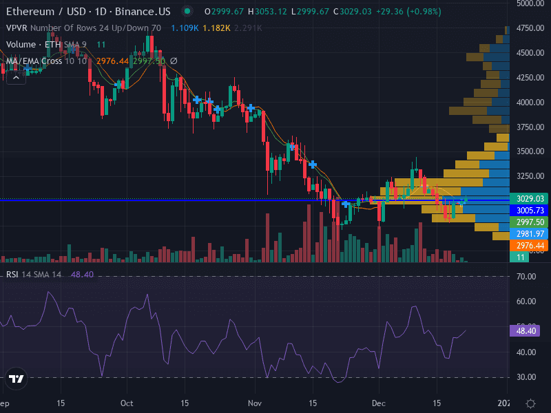 ETH/USD remains in a short-term downtrend, with risk skewed to the downside unless $3,053 is reclaimed.