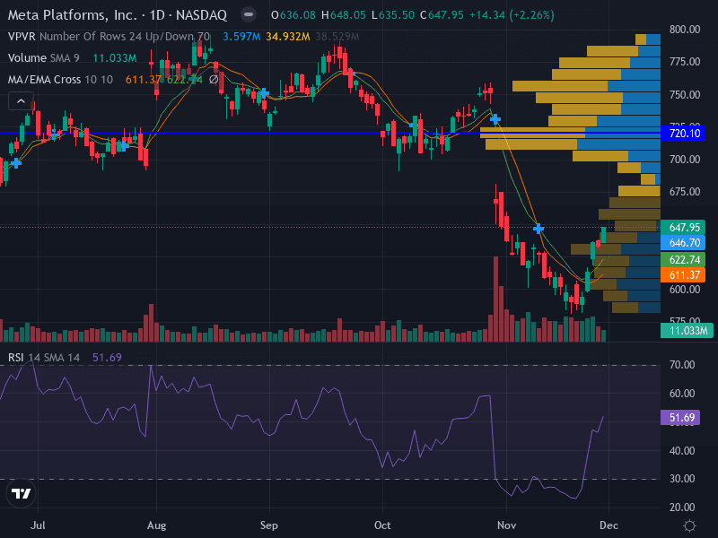 Bullish Recovery: META has moved above its 10-day EMA, with price action showing a clear recovery from recent lows.