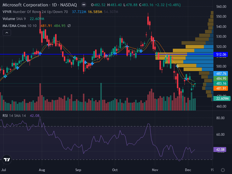 MSFT is in a consolidation phase, trading between key support at 481.91 and resistance at 512.06.