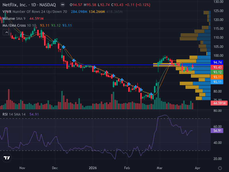 Support & Resistance: NFLX is trading in a tight range. A decisive move above 94.74 could trigger a bullish breakout, while a close below 91.60 might lead to further downside.