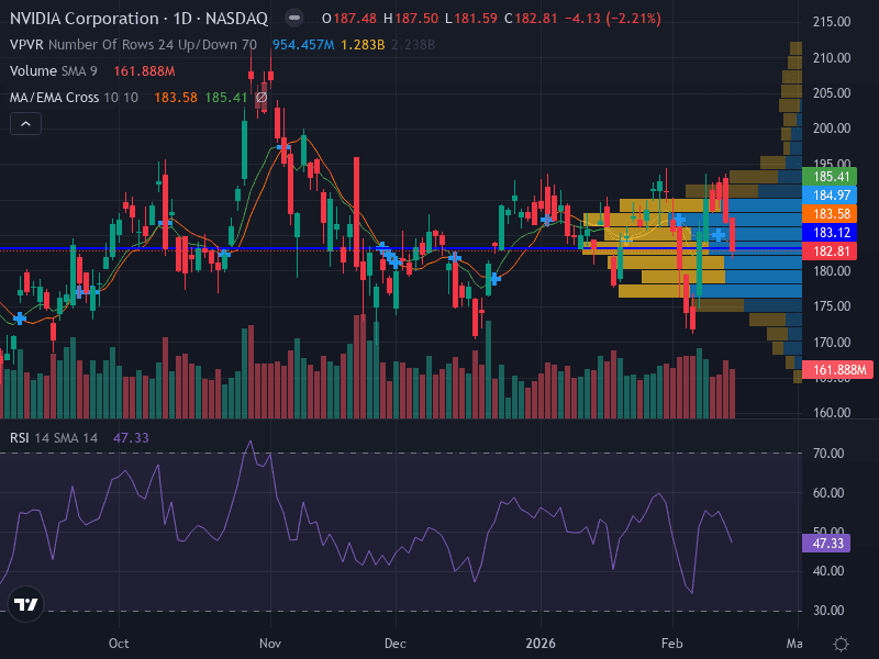 In-depth weekly analysis for NVIDIA (NVDA) covering technicals, news, and actionable scenarios for Week 2 of February 2026. Includes chart, support/resistance, MACD, volume, and news impact.